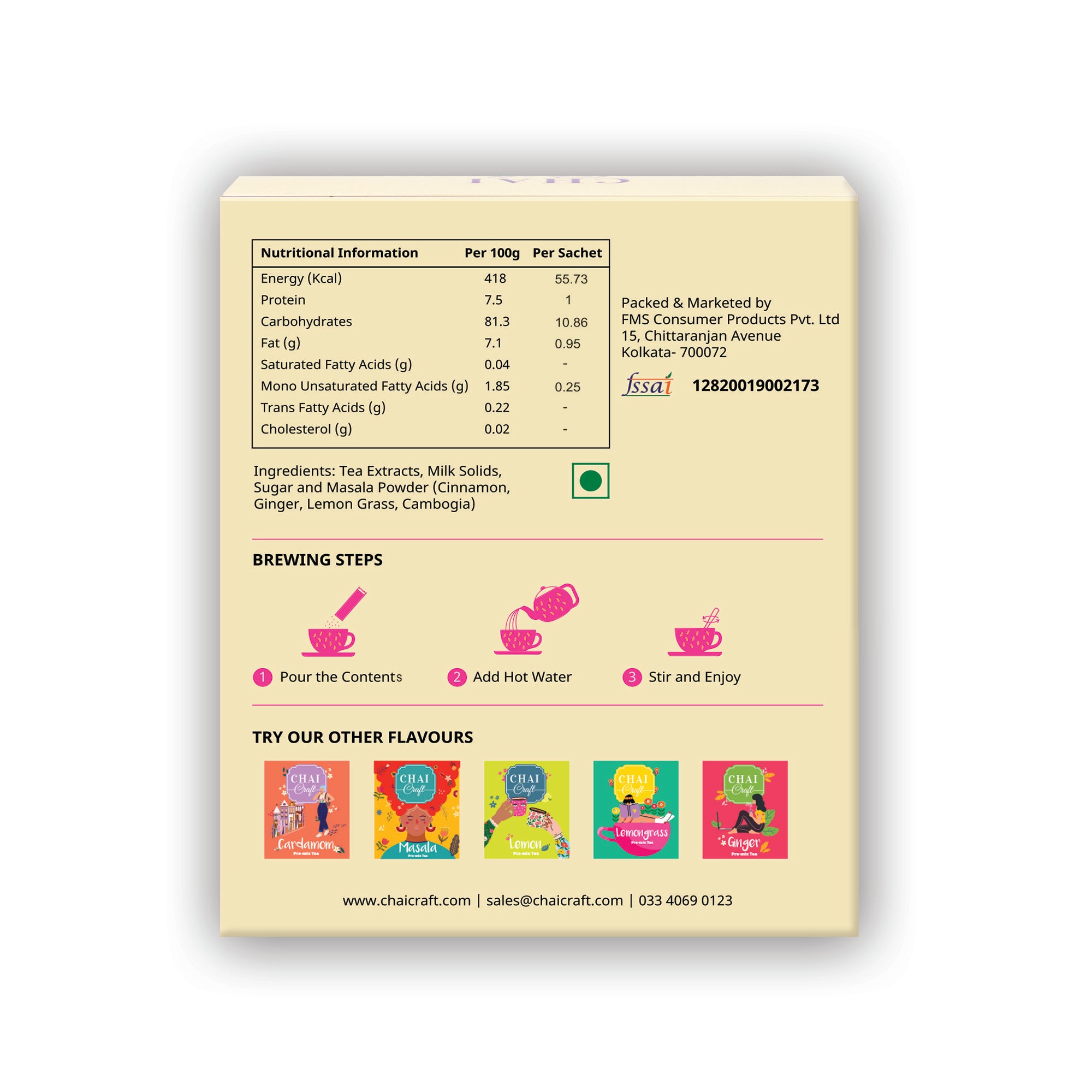 Chai Craft’s Diet Premix Tea gives you 100% of the taste of great tea without the calories. Specially formulated for those who need to control sugar intake without sacrificing their need for an invigorating cup of tea with a fantastic aroma.