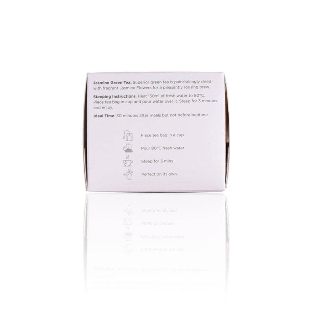 Use fresh pure water for brewing. Use one Jasmine Green Tea Bag in 150 ml of water which has just come to a boil. Let it cool briefly before pouring over tea bag. Steep for 3 minutes.