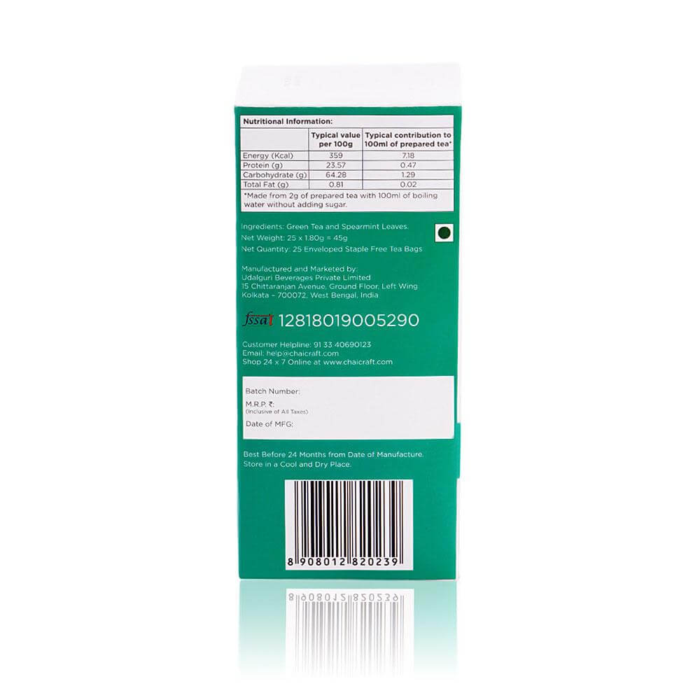 Spearmint Green Tea, Refreshing Herbal Green Tea, 25 Tea Bags (Get 5 Assorted Tea Bags Free)